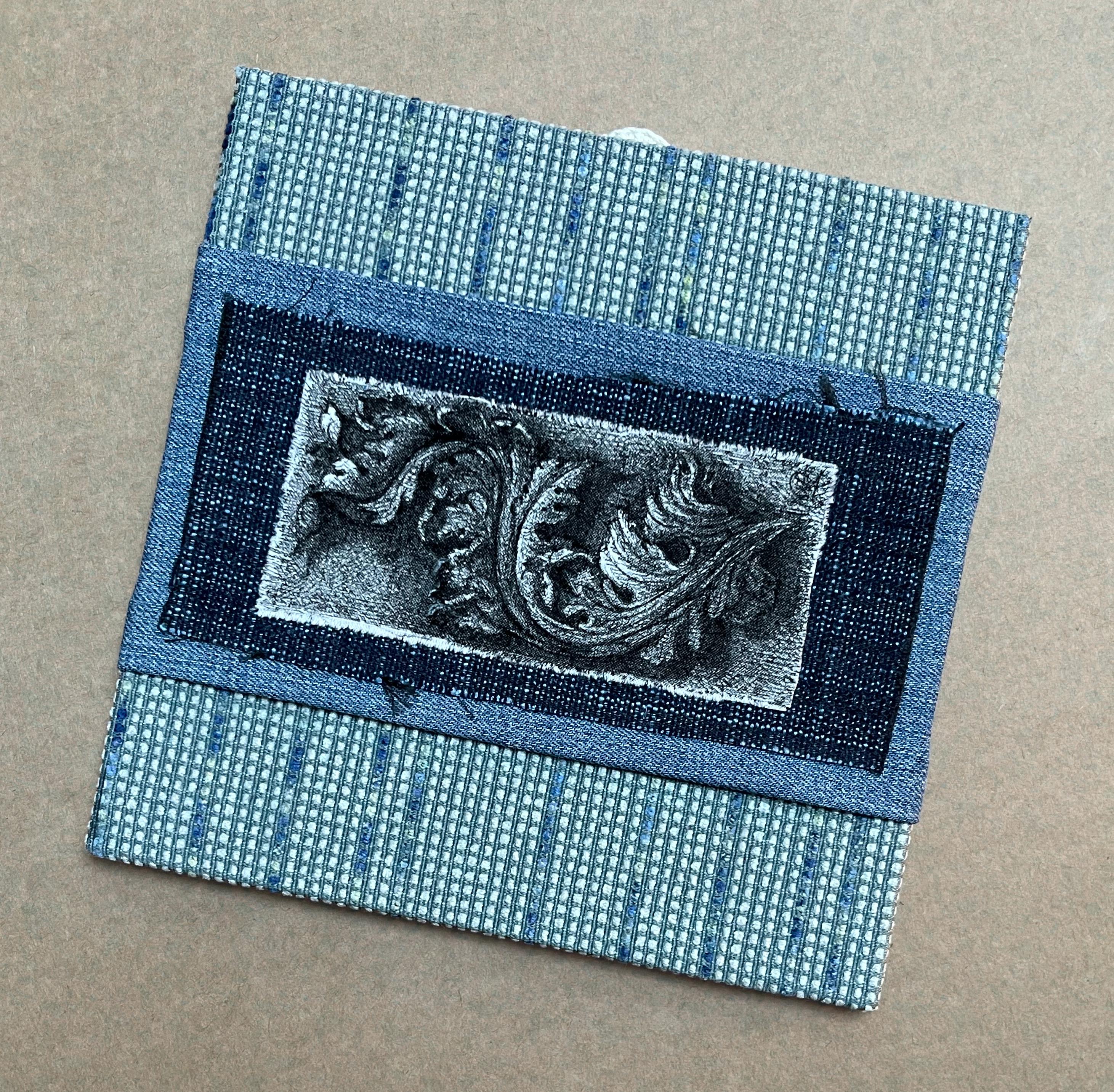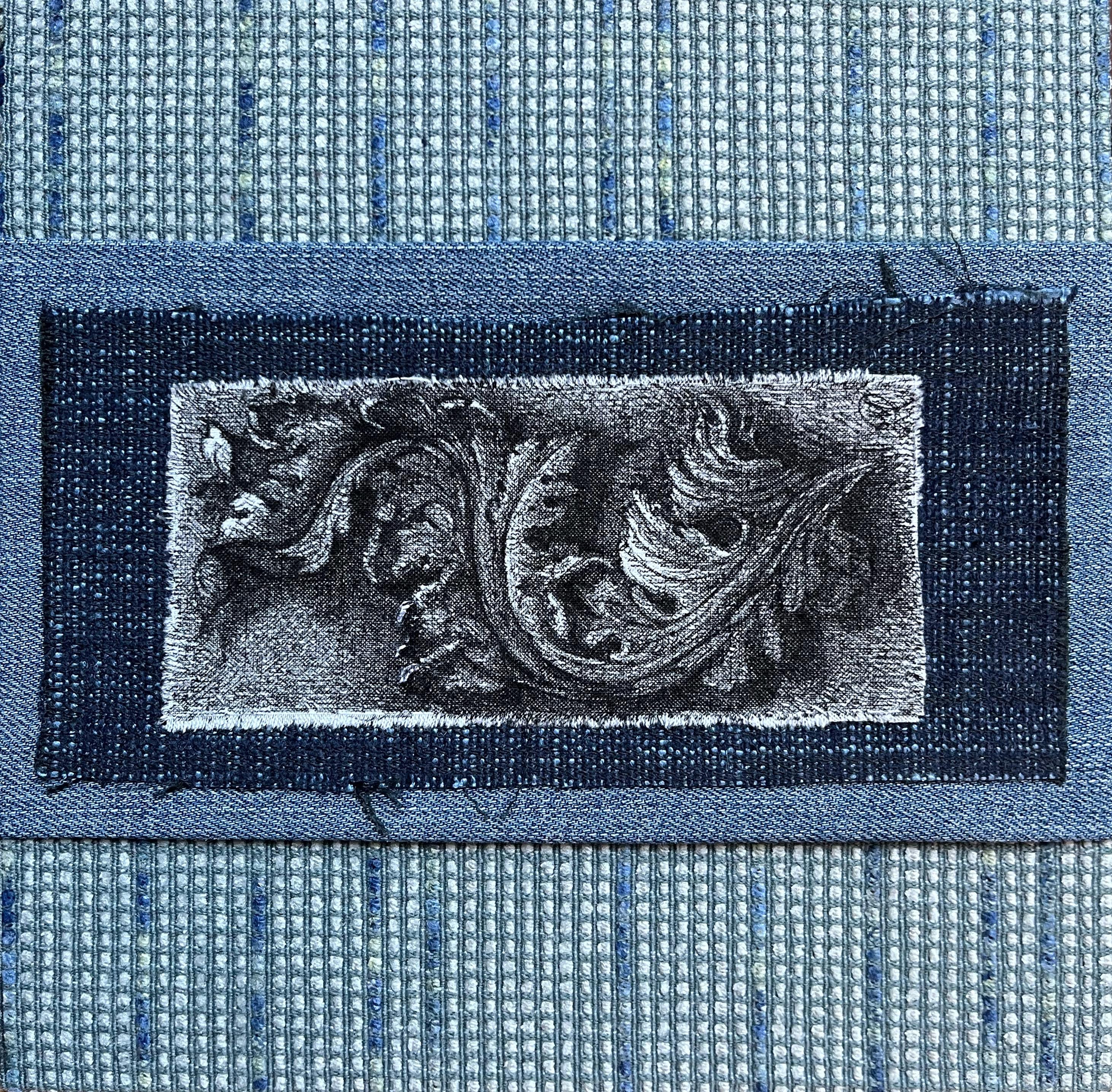 Freehand drawing in ink on fabric. One-of-a-kind piece. Wood panel covered with fine upholstery fabrics. Combine with other pieces from the collection!